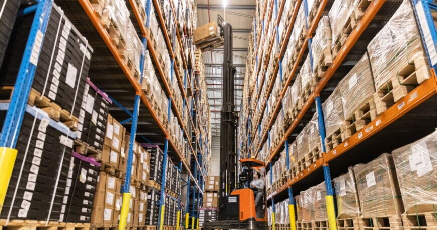 - Du lagerst Packstücke im Hochregallager ein und aus – mittels Schubmaststapler